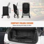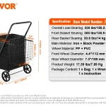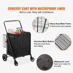 Make errands effortless with this heavy-duty folding shopping cart. Features 360° swivel wheels, a dense metal mesh base, and a removable waterproof PVC liner for easy cleanup. Spacious 106 L capacity (about 28 gallons) and a strong frame support up to 330 lb for groceries, laundry, or hauling supplies. Folds compact for storage and is ideal for market runs, travel, and everyday hauling.
