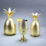 Stylish pineapple-shaped stainless steel mug for serving cocktails. Available in silver, copper, and gold finishes for classic bar presentation. Solid-weight feel and textured pineapple design add flair to home bars, parties, and bartender setups — a standout serveware piece for cocktail lovers.