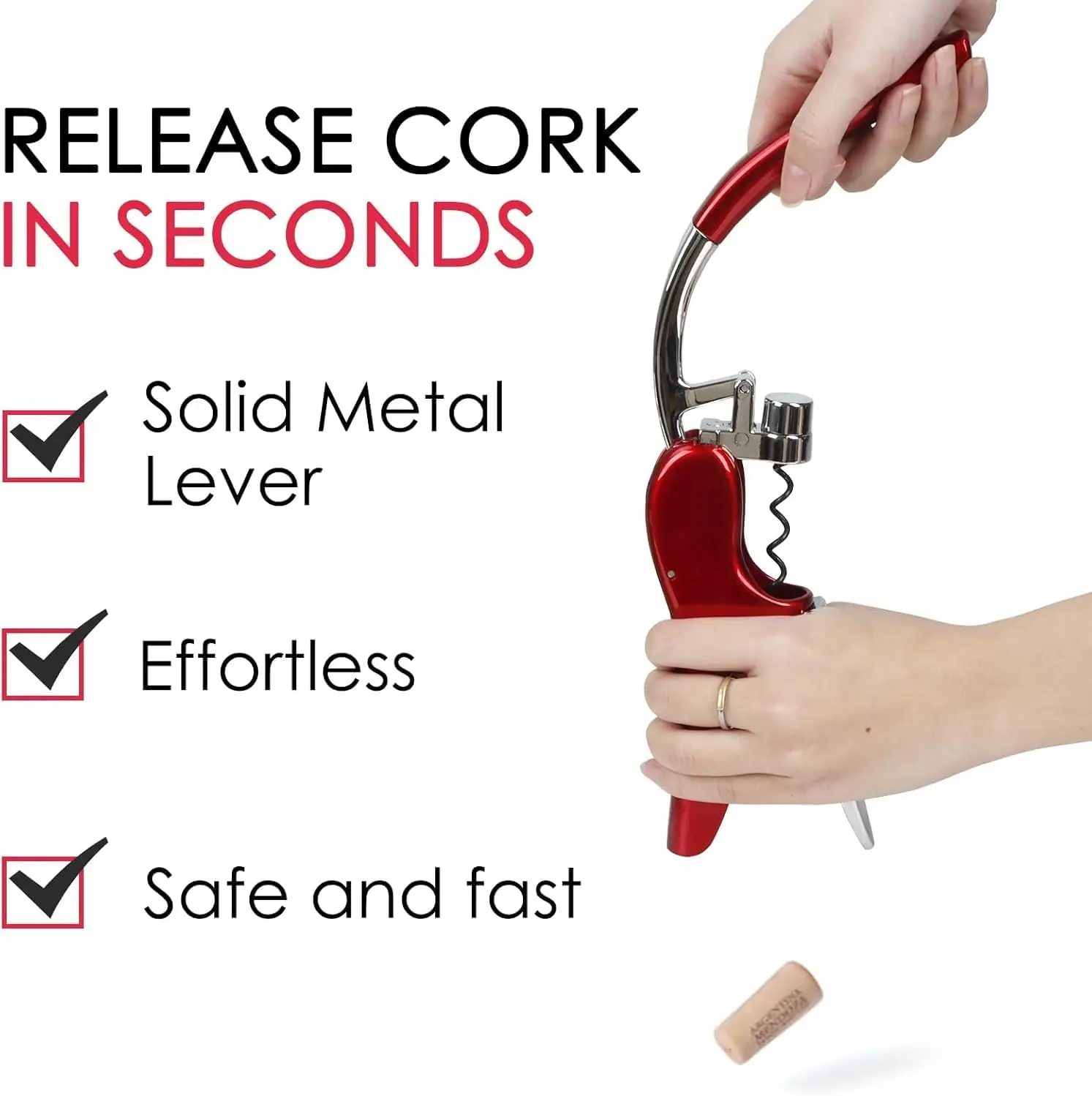 - Vertical lever mechanism for superior leverage and clean cork removal