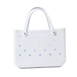 Description: Take everything you need to the shore in effortless style. This XL waterproof EVA tote is lightweight, foldable, and easy to clean—perfect for beach days, poolside lounging, picnics, boating, shopping, or everyday errands. The roomy rectangular interior holds towels, snacks, toys, and more, while durable EVA/PC construction resists water and sand. Eco-friendly and designed for convenience, it packs flat for storage and opens into a sturdy, fashion-forward beach basket that’s as practical as it is cute.
